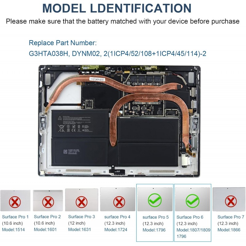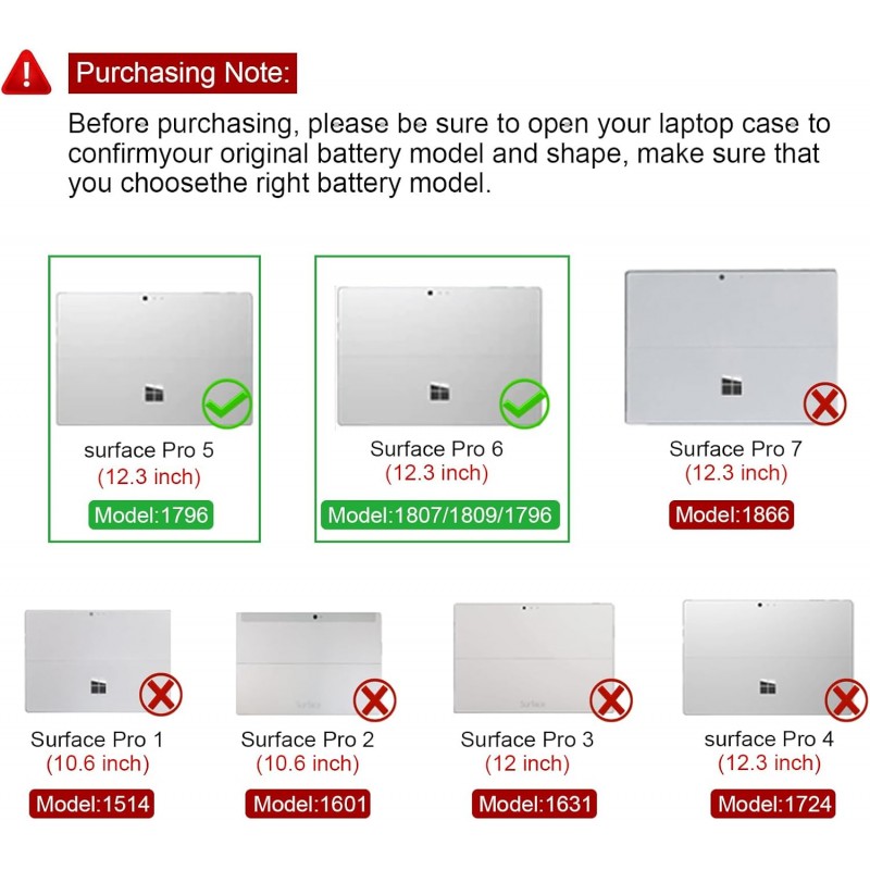 Bateria de substituição de alta qualidade compatível com os seguintes modelos Microsoft Surface: