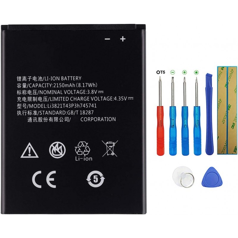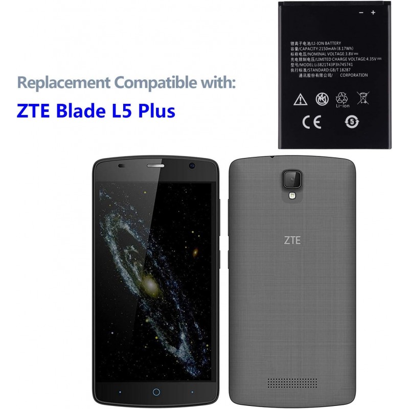 Bateria de substituição Li-ion compatível com ZTE Blade L5 e L5 Plus, com capacidade de 2150mAh, inclui kit de ferramentas para instalação.