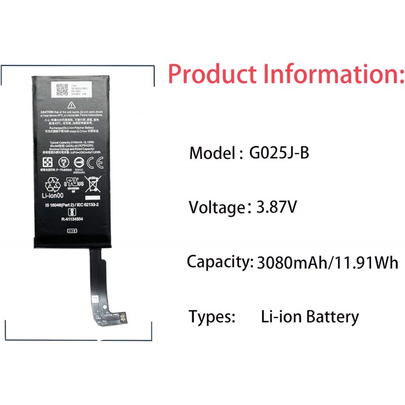 Bateria de substituição de alta qualidade modelo G025J-B, compatível exclusivamente com o Google Pixel 4A 4G de 5,81 polegadas (Não compatível com Pixel 4A 5G 6,2"). Esta bateria recarregável de iões de lítio foi desenvolvida para garantir uma performance segura e eficiente, com diversas proteções integradas contra riscos comuns como curto-circuito, sobrecarga, descarga excessiva, sobrecorrente e sobreaquecimento.