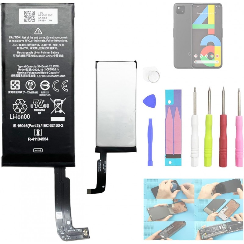 Bateria de substituição compatível com Google Pixel 4A 4G de 5.81 polegadas. Inclui kit completo de ferramentas para instalação.