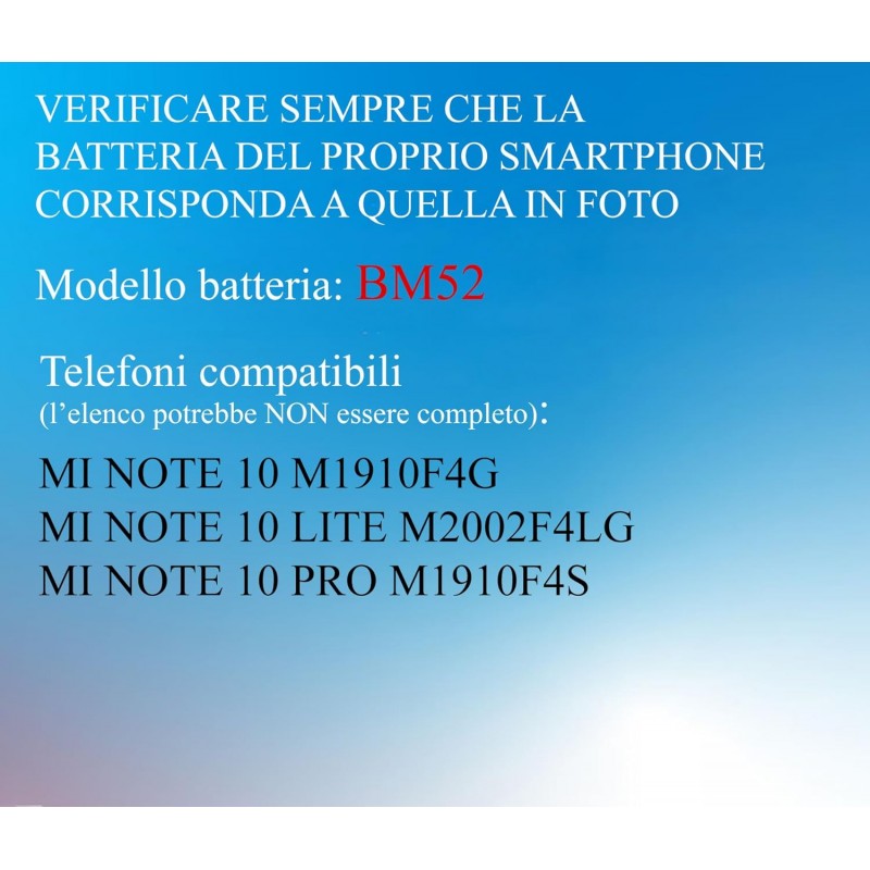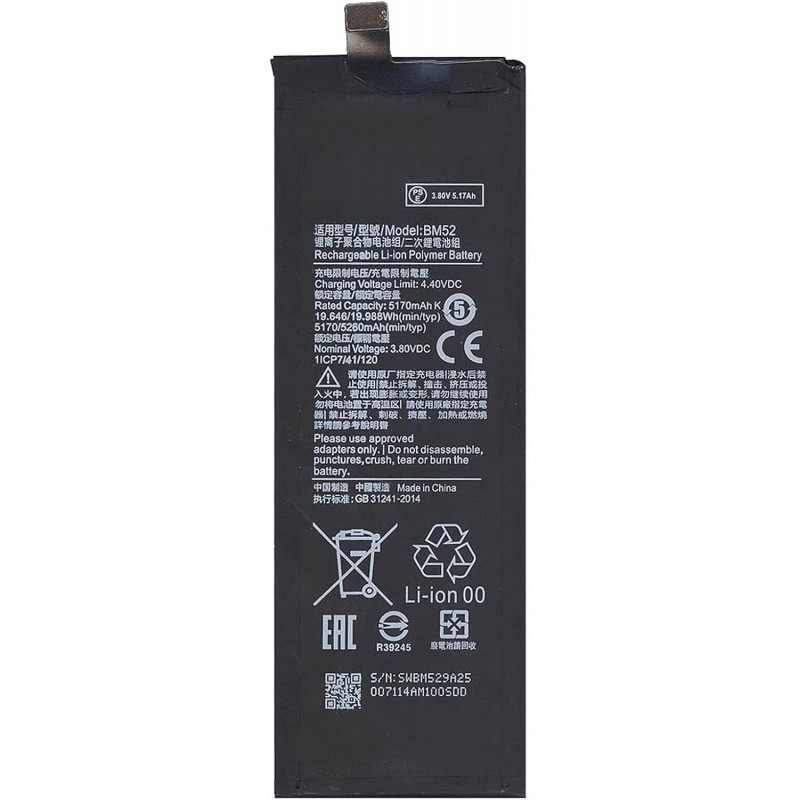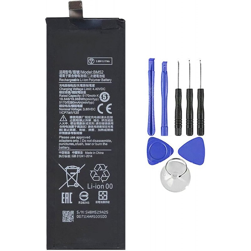 Bateria de substituição compatível com Xiaomi BM52, ideal para os modelos Mi Note 10, Note 10 Lite e Note 10 Pro. Capacidade de 5260mAh, nova com 0 ciclos de operação. Inclui kit completo de ferramentas para substituição.