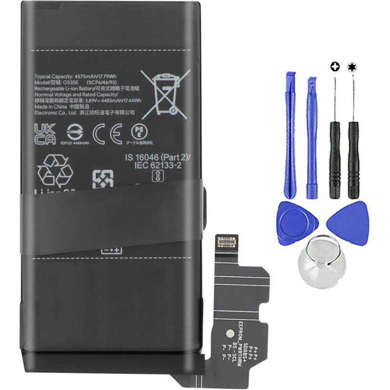 Bateria de substituição compatível para Google Pixel 8, modelo GS35E, com capacidade típica de 4575mAh e capacidade nominal de 4485mAh (17,79Wh). Esta bateria é nova e possui zero ciclos de funcionamento, garantindo a máxima durabilidade e desempenho.