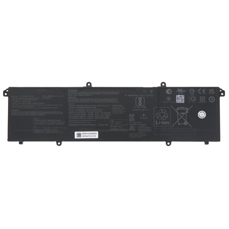 Bateria C31N2201 de substituição para portáteis ASUS Vivobook 15, Vivobook 16, Vivobook Go 15 e versões OLED. Capacidade de 42 Wh, 11,55 V. Compatível com uma vasta gama de modelos.