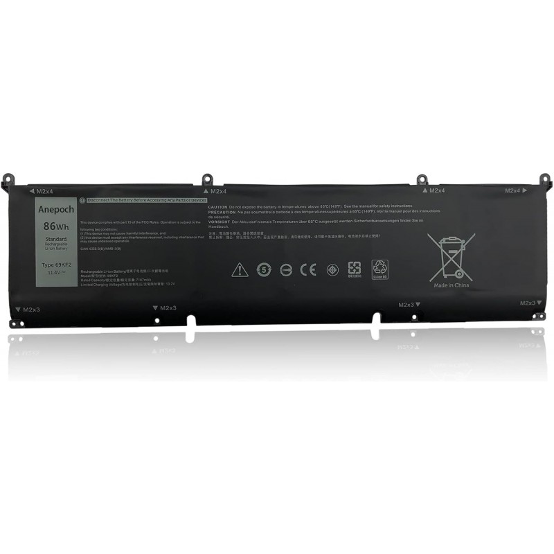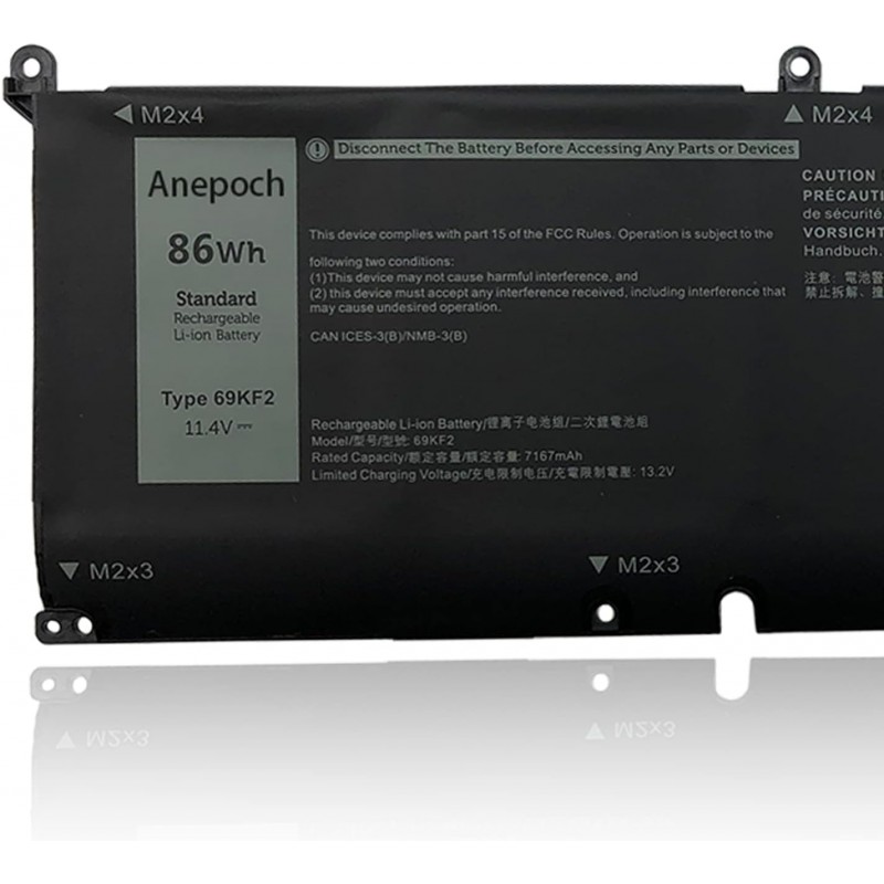 Bateria de substituição modelo 69KF2 compatível com portáteis Dell XPS, Precision e Alienware. Capacidade de 86Wh, 7167mAh e tensão de 15,4 volts. Produto novo, recarregável e pronto a instalar.