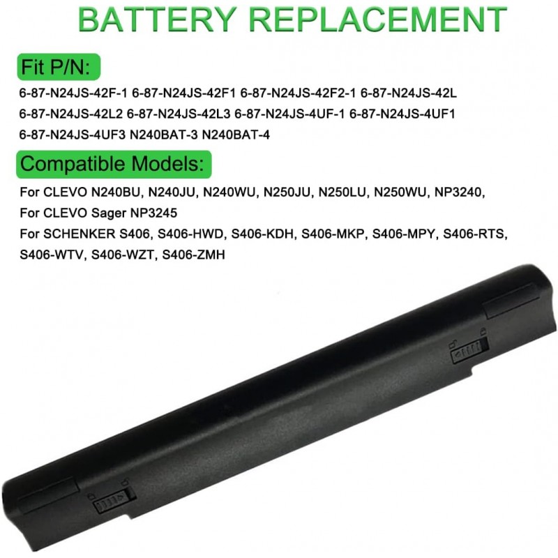 Bateria de substituição compatível com vários portáteis Clevo, Sager, Schenker e outros modelos compatíveis. Ideal para substituir baterias antigas, desgastadas ou com pouca autonomia, permitindo recuperar o funcionamento normal do portátil.