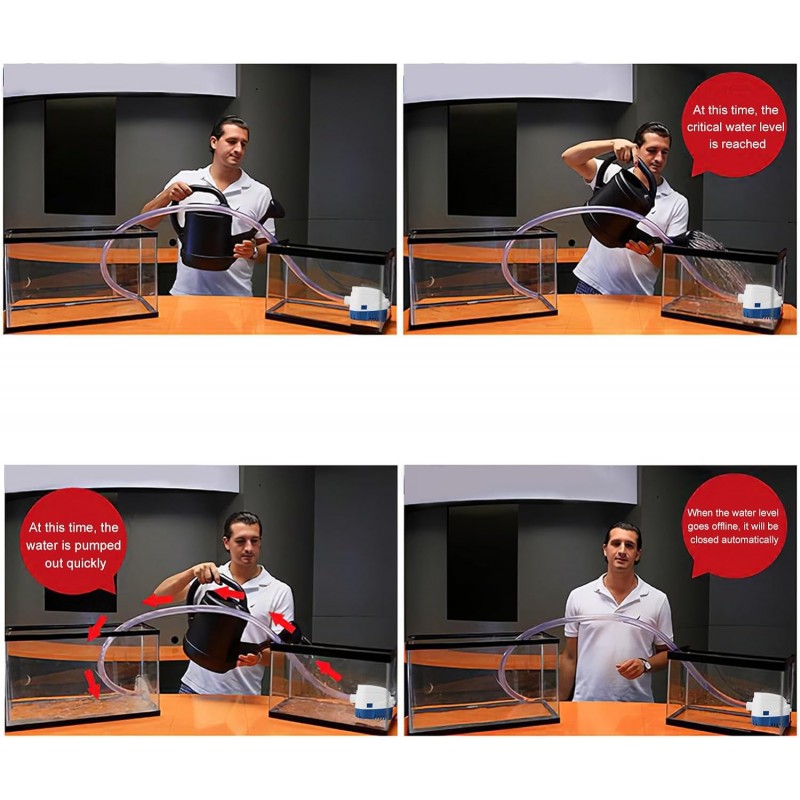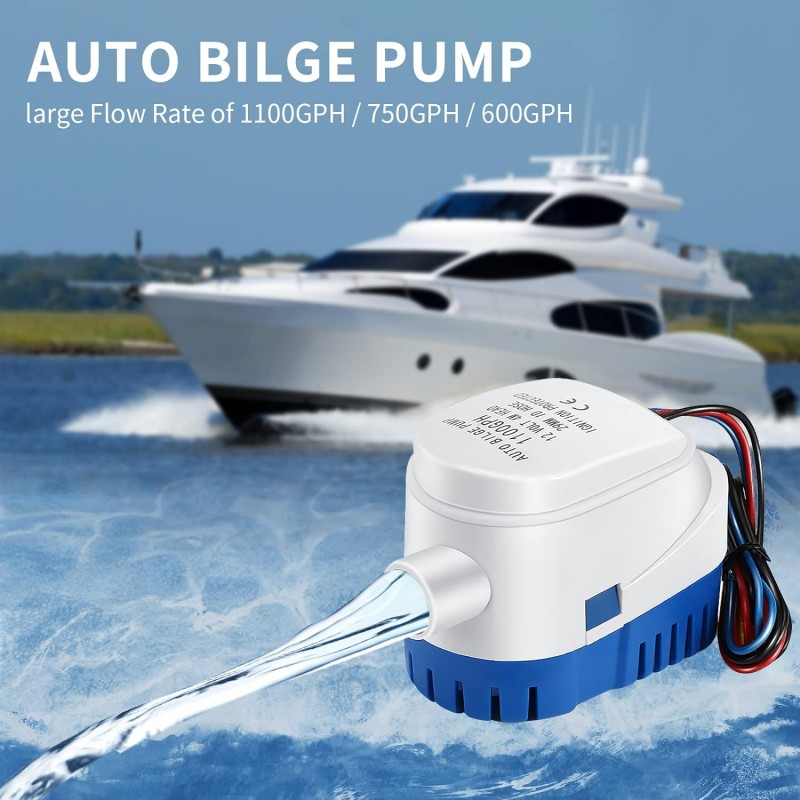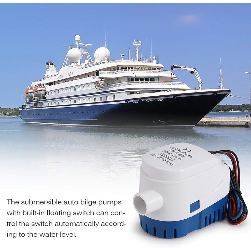 Bomba de achique automática 12V com taxa de fluxo de 1100 GPH (70 LPM), ideal para carros, barcos e lagoas. Compacta, durável e resistente à corrosão, com interruptor de boia integrado para operação fácil e eficiente.