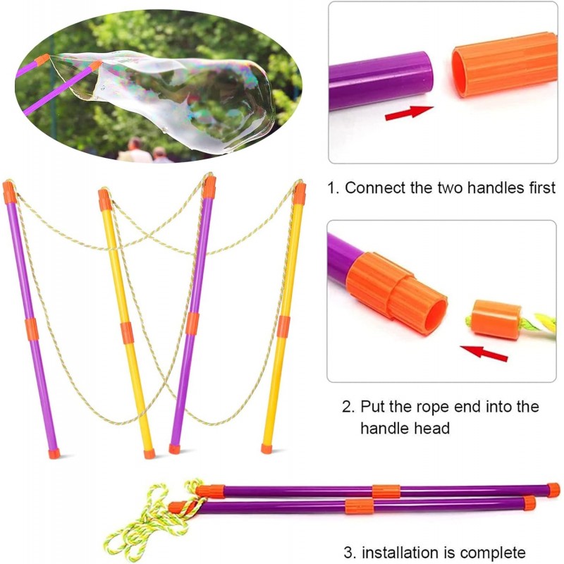 Este conjunto de varinhas de bolhas é ideal para festas de aniversário, dias em família, parques infantis, campismo, viagens e outras atividades ao ar livre.