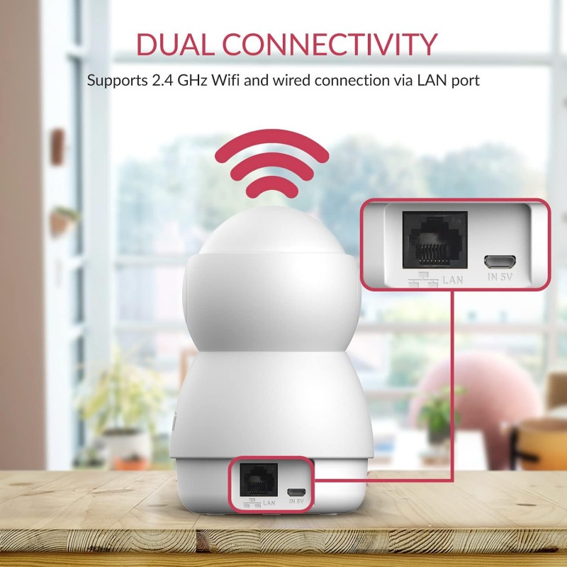 Wi-Fi Dupla Banda e Ethernet: Conecte-se via Wi-Fi de 2,4 GHz ou use um cabo Ethernet através da porta LAN RJ45.