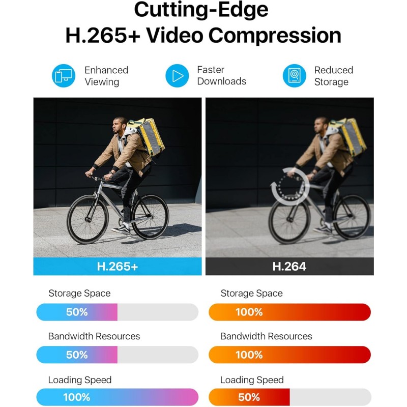 Inclui compressão de vídeo H.265+, que permite poupar espaço de armazenamento e largura de banda mantendo a qualidade da imagem.