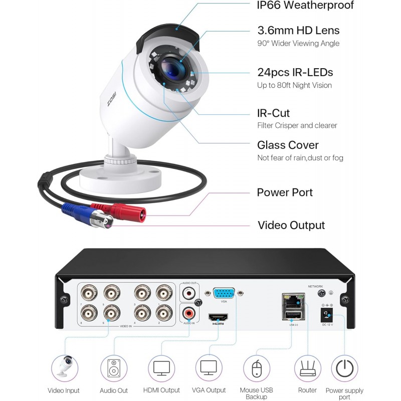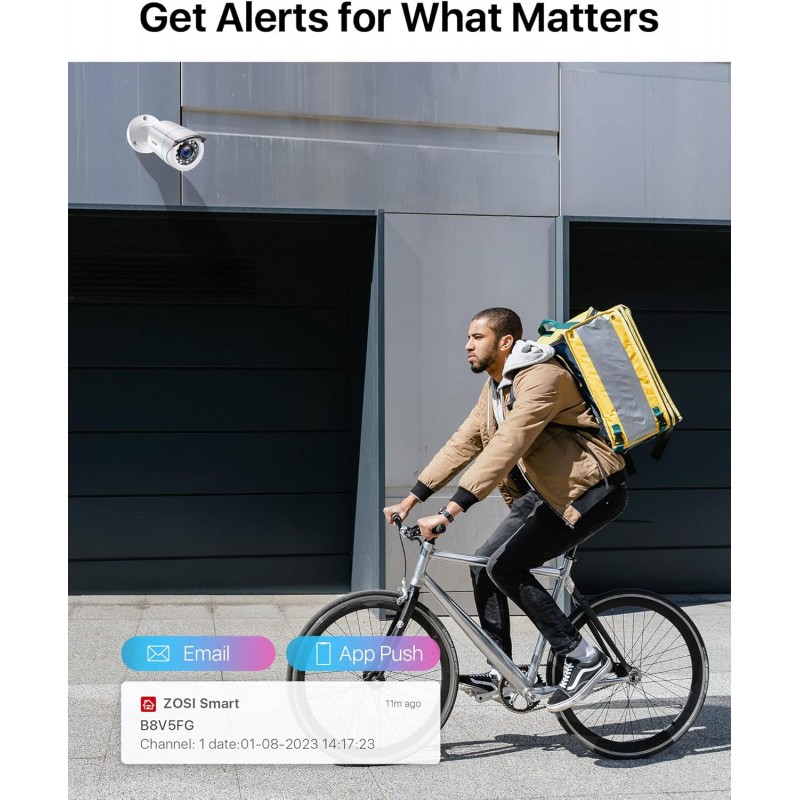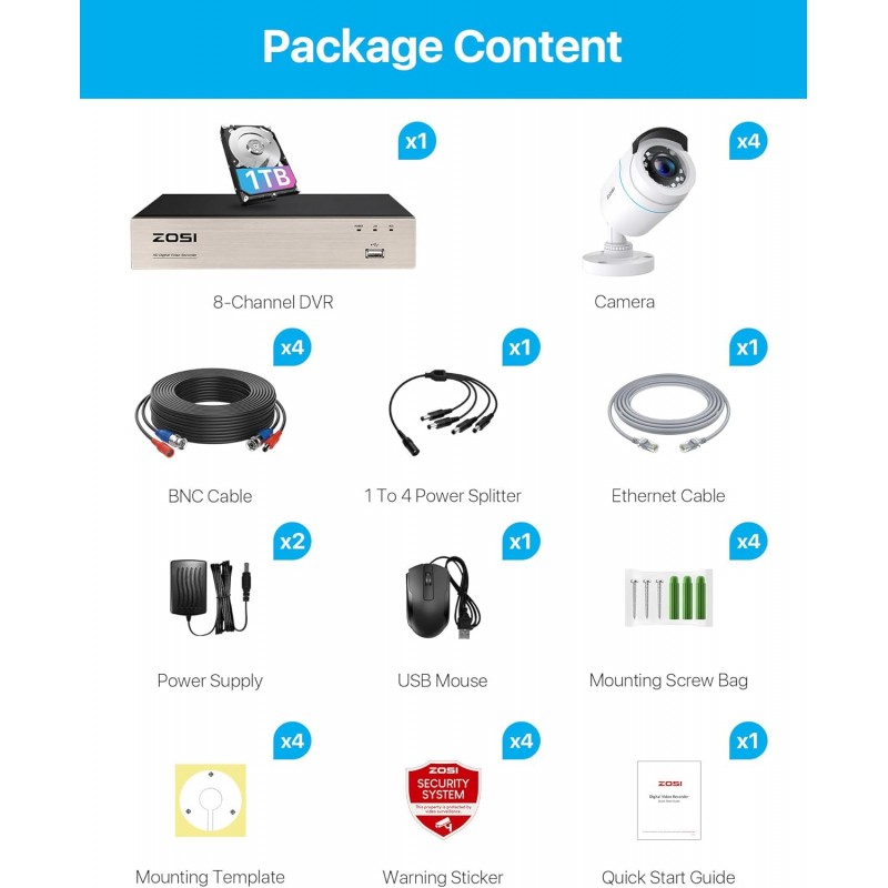Este kit de videovigilância ZOSI é ideal para reforçar a segurança de casas, escritórios, lojas ou armazéns. Inclui 4 câmaras Full HD 1080P com visão noturna, gravação contínua 24 horas, alarme por deteção de movimento e acesso remoto por app gratuita.