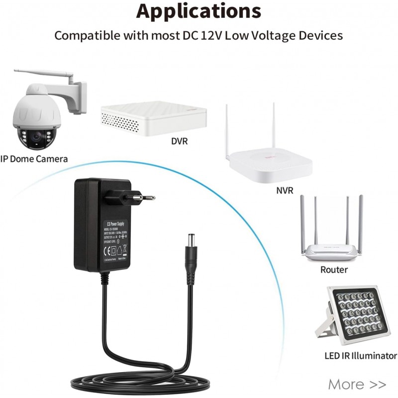 Este adaptador de corrente contínua de 12V 3A é a solução ideal para fornecer energia de forma segura e eficiente a diversos dispositivos eletrónicos, incluindo câmaras de vigilância CCTV, gravadores NVR/DVR, routers, tiras LED e TV-Box. Com proteção contra sobrecarga, calor e curto-circuitos, este adaptador garante um desempenho fiável e seguro.