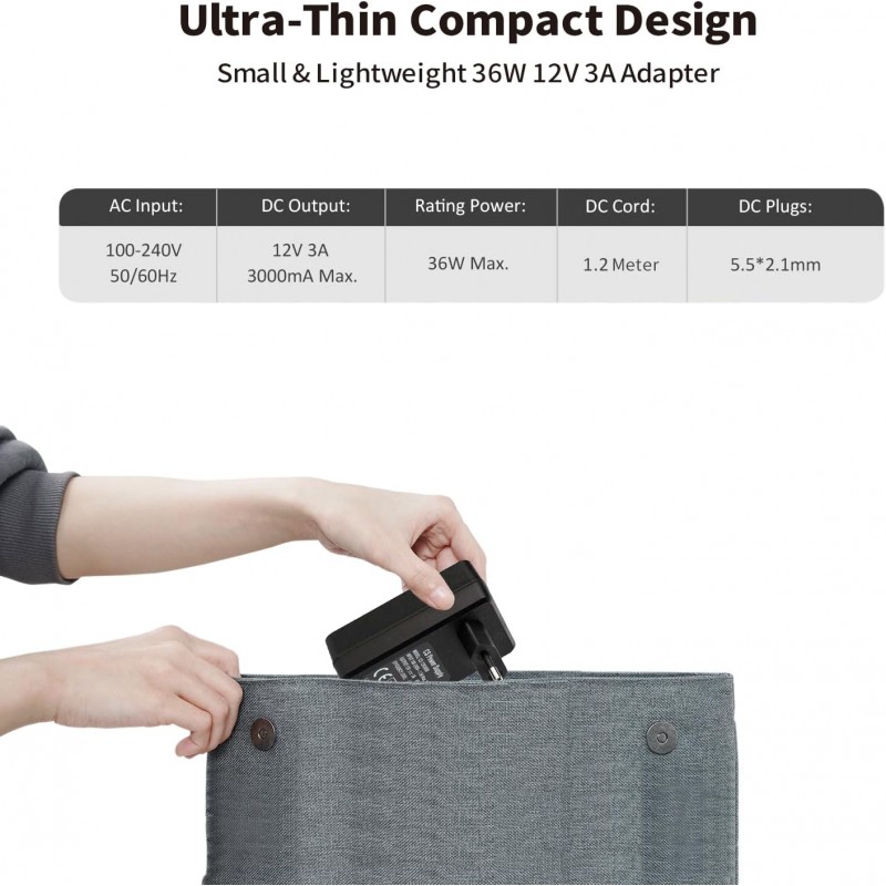 Com este adaptador de corrente contínua 12V 3A, pode garantir uma alimentação estável e segura para os seus dispositivos eletrónicos, mantendo-os a funcionar de forma eficiente e sem interrupções.