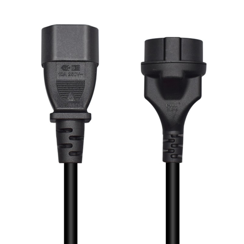 De um lado, tem conector do tipo SCHUKO (fêmea) e, do outro, IEC60320-C14 (macho).