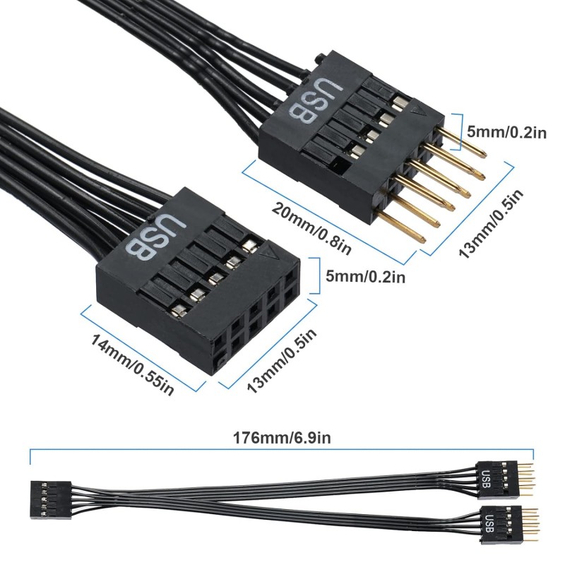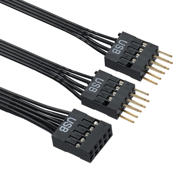 Conector USB 2.0 de 9 pinos fêmea para 2 conectores de 9 pinos macho, banhados a ouro.