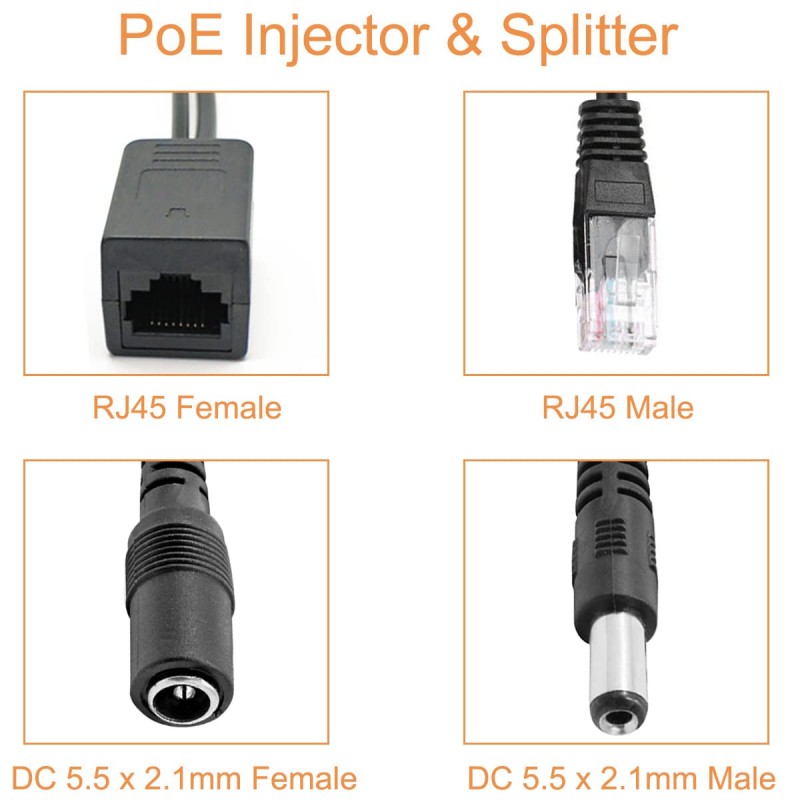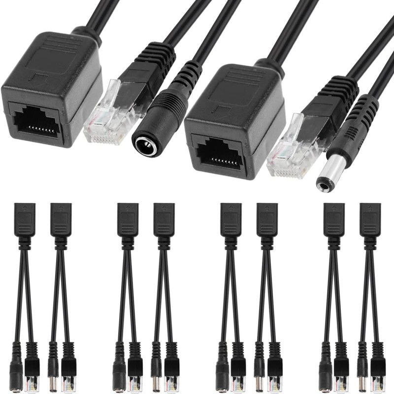Kit de Adaptadores Passivos PoE RJ45 - Divisor e Injetor, 5,5 x 2,1 mm DC, para Câmaras IP e WLAN - Pack de 4
