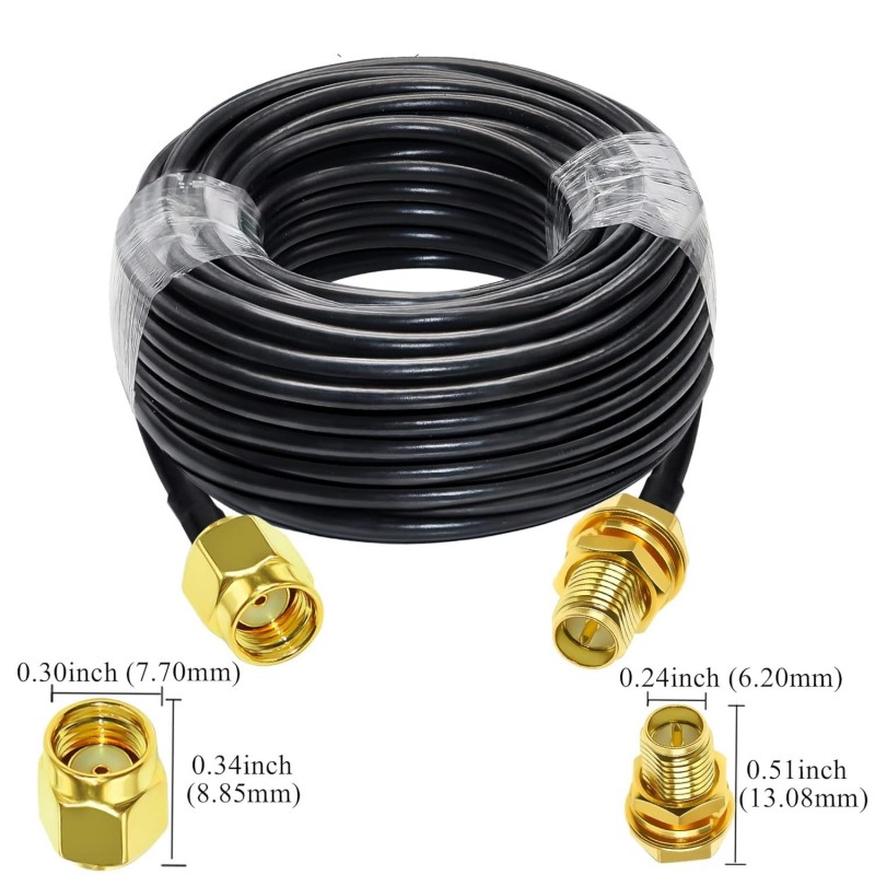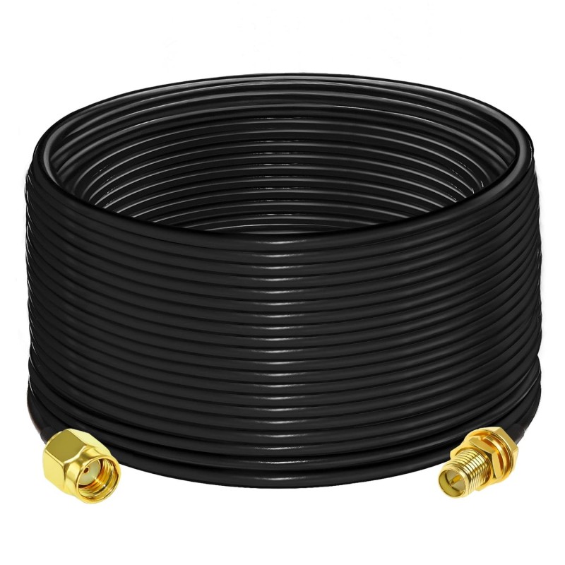 1 x Cabo de Extensão Coaxial RG58 de 20 metros (Polaridade Reversa SMA Fêmea para Macho)