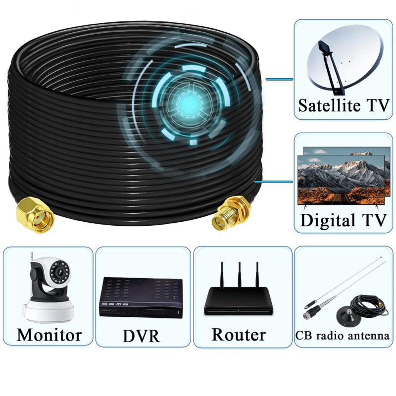 Este cabo é a solução perfeita para estender a cobertura da sua antena ou melhorar a recepção em dispositivos compatíveis.