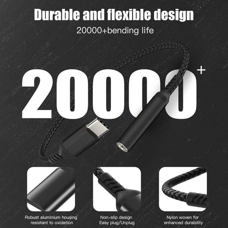 Revestido em alumínio resistente à corrosão e oxidação, o adaptador é ainda protegido por um cabo em nylon trançado de alta resistência, testado com mais de 20.000 inserções e dobragens, assegurando uma longa vida útil e resistência a torções e emaranhados.
