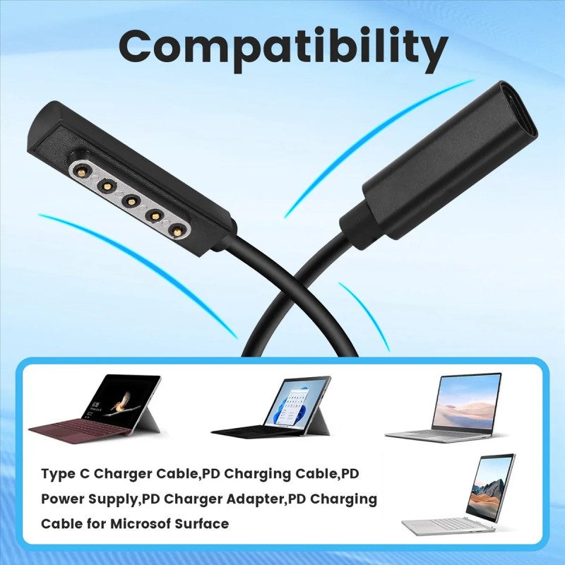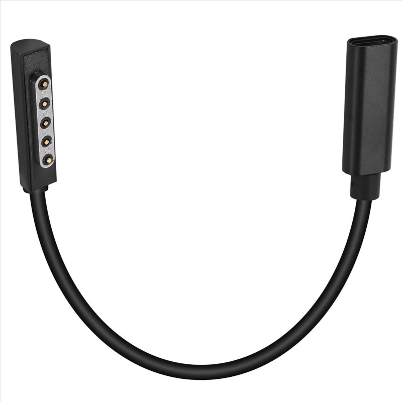 Adaptador conversor de carregamento PD com entrada USB Tipo C e conetor magnético para Microsoft Surface Pro 1 e 2. Ideal para quem pretende carregar o seu Surface com uma fonte de alimentação USB-C compatível com Power Delivery (PD).