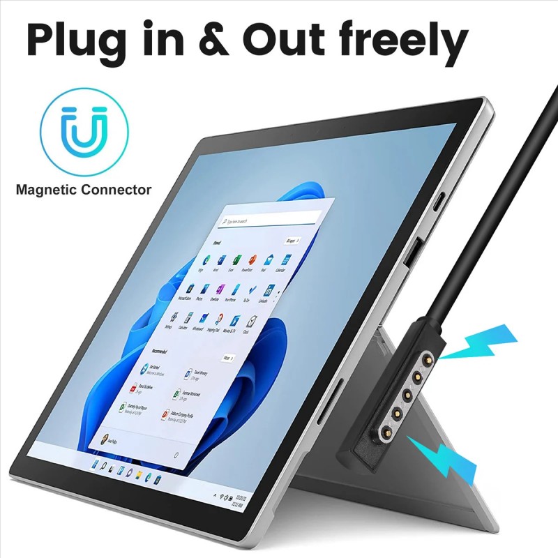 Adaptador de carregamento USB Tipo C para Microsoft Surface Pro 1 e 2. Ligação magnética, compacto e fácil de transportar. Suporta 12V 3,6A.