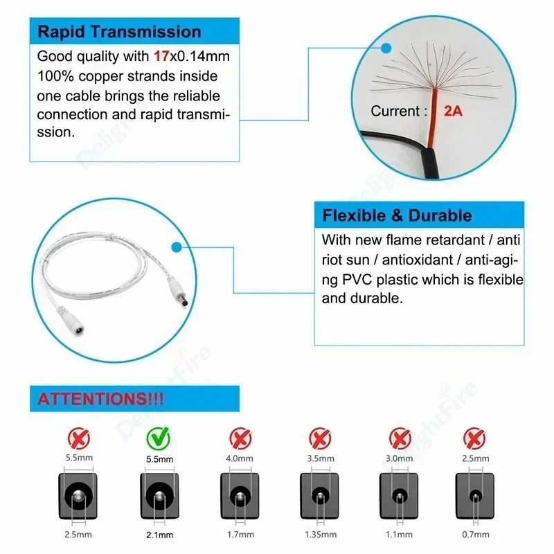 Este cabo é exclusivamente compatível com conectores de 5.5 mm x 2.1 mm.