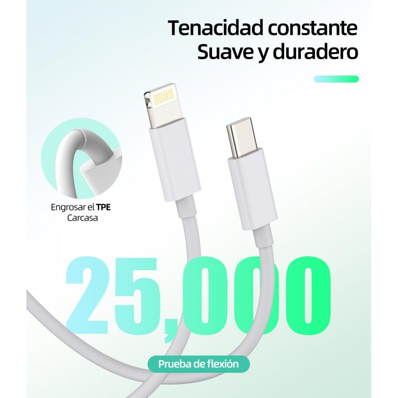 O Cabo USB-C para Lightning de 2 metros foi projetado para oferecer carregamento rápido, eficiente e seguro para dispositivos Apple. Com comprimento generoso, proporciona liberdade para carregar o seu dispositivo enquanto trabalha, relaxa ou se desloca pela casa.
