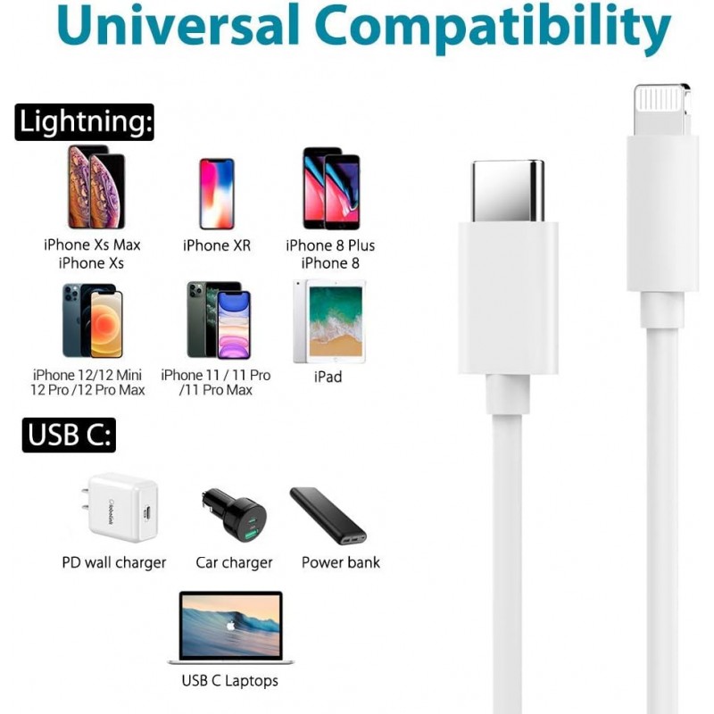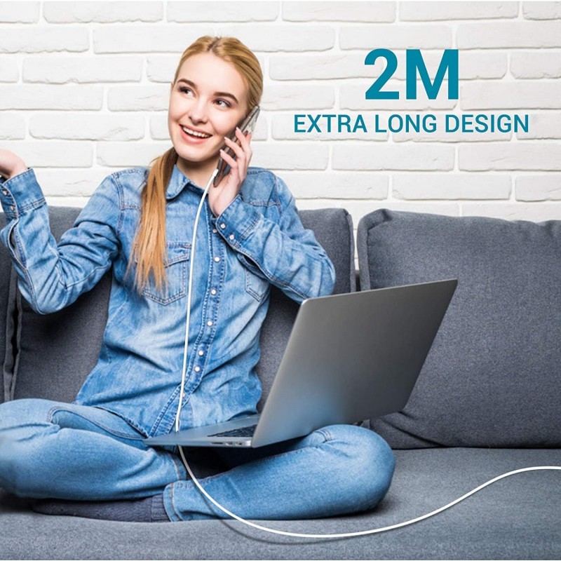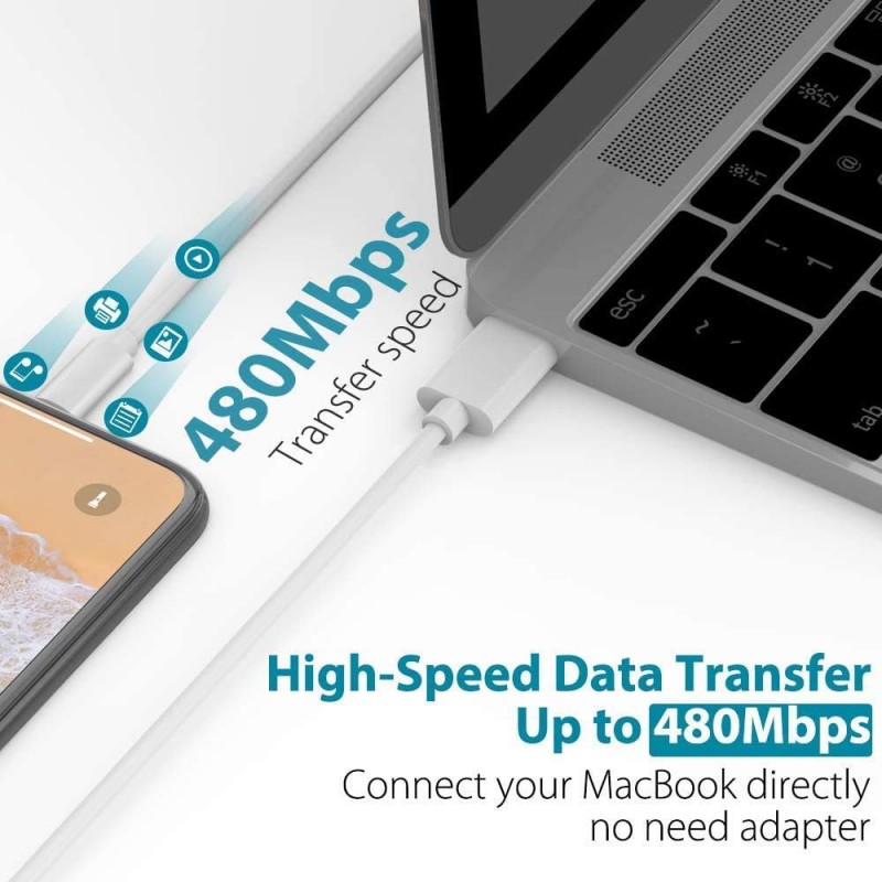 O Cabo USB C para Lightning de 2 metros oferece carregamento rápido e sincronização estável para dispositivos Apple. Certificado MFi (Made for iPhone/iPad), garante compatibilidade total com os dispositivos Apple, assegurando uma experiência de carregamento segura e sem falhas.