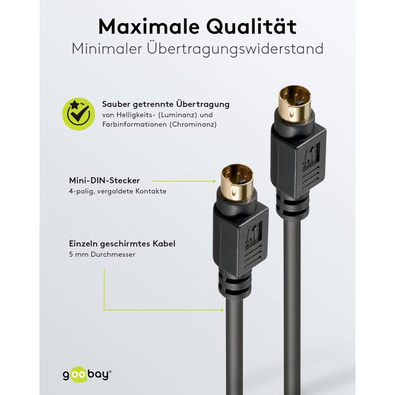 | Nome do modelo | Cabo de vídeo S, cabo S-VHS, mini DIN macho de 4 pinos para Mini-DIN macho de 4 pinos, banhado a ouro, blindado individualmente, preto, 1 metro |