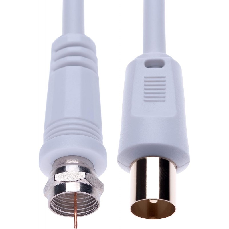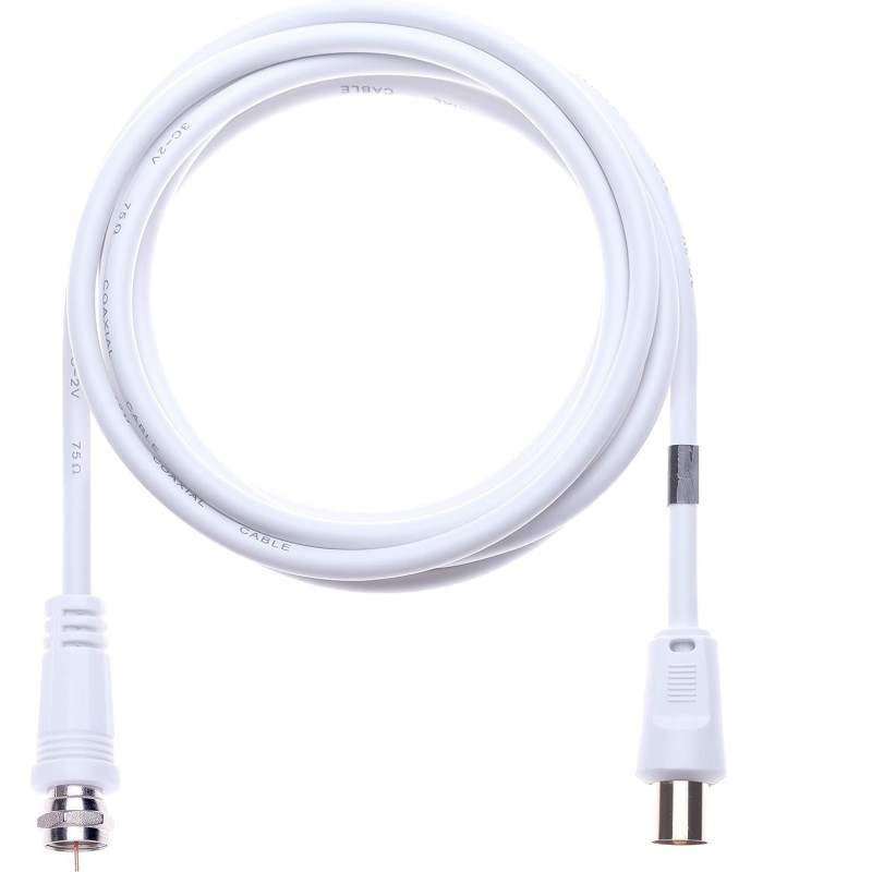 Cabo Coaxial Aéreo de 2m, Conector F para RF, Branco - Ideal para TV, Satélite, HDTV e Modems