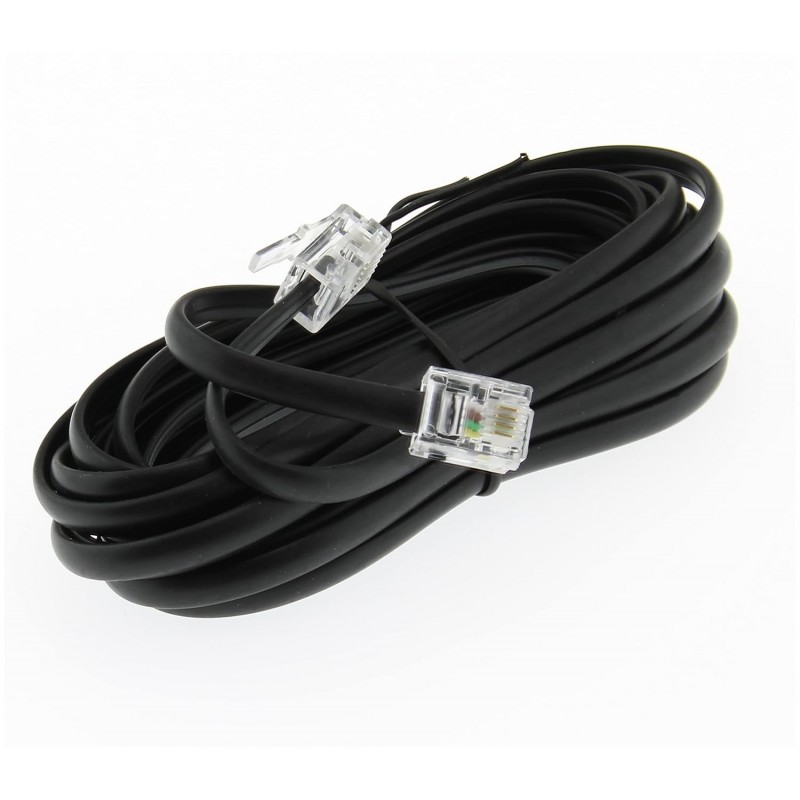 Cabo telefónico RJ11 6P4C de 5 metros, compatível com telefones, faxes, modems, routers DSL/VDSL e outros dispositivos analógicos e digitais.