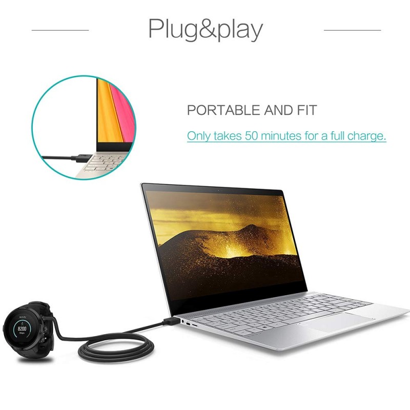 Cabo USB de carregamento compatível com Suunto Spartan Ultra HR, Spartan Sport Wrist HR, Suunto 9, Suunto D5 e EON Core. Comprimento de 1 metro, materiais duráveis e carregamento estável.