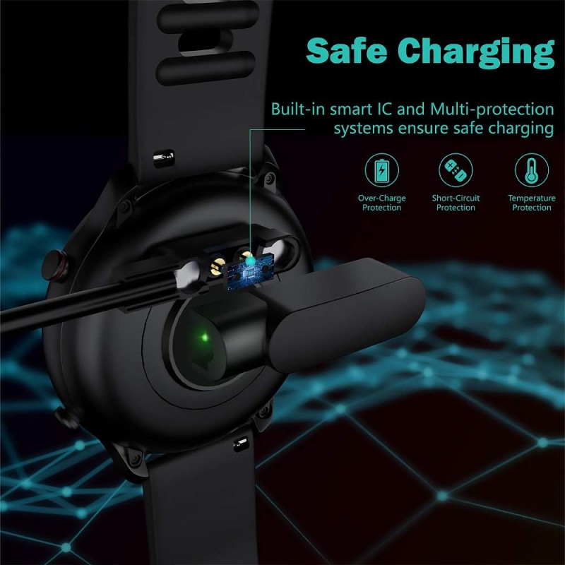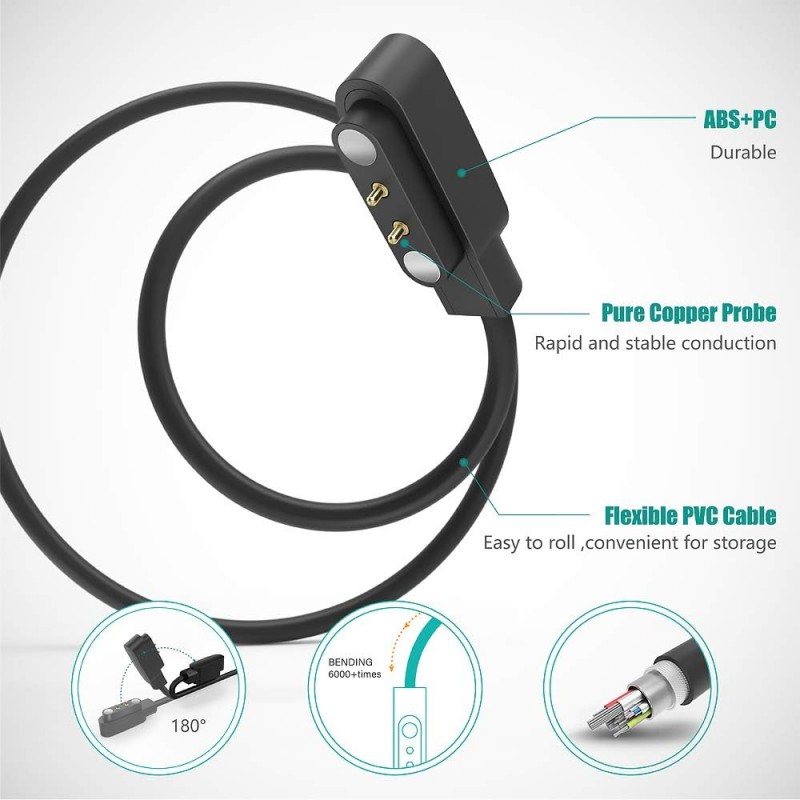 Este cabo de carregamento USB foi projetado para garantir um carregamento rápido e seguro para o seu smartwatch, incluindo o Ticwatch GTX e outros modelos compatíveis. Com 100 cm de comprimento, permite maior flexibilidade ao carregar, seja através do computador ou diretamente na corrente elétrica.