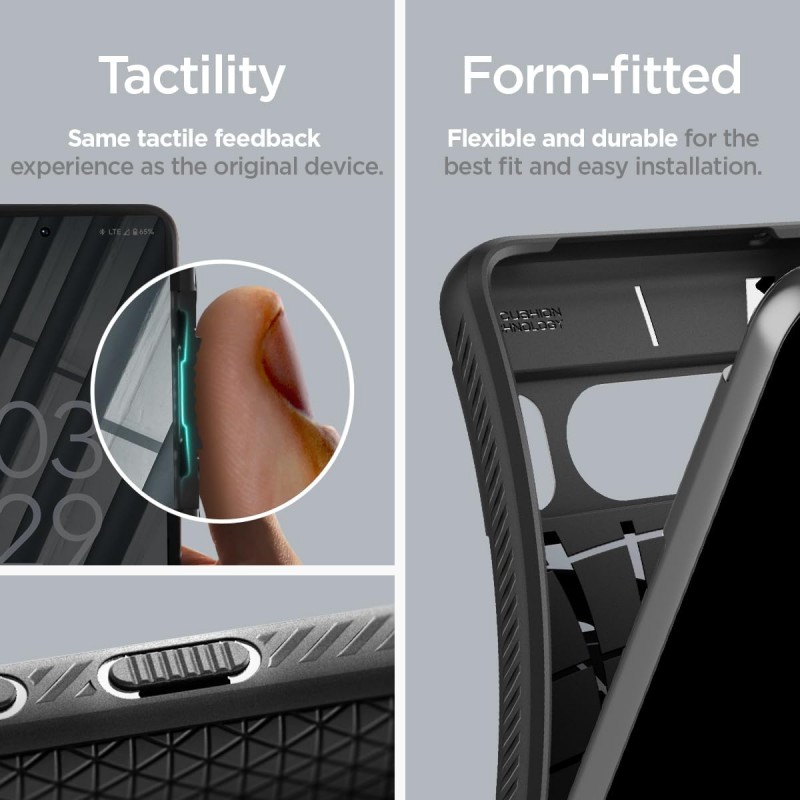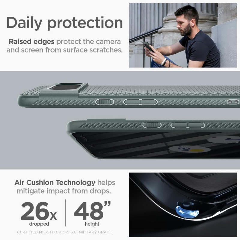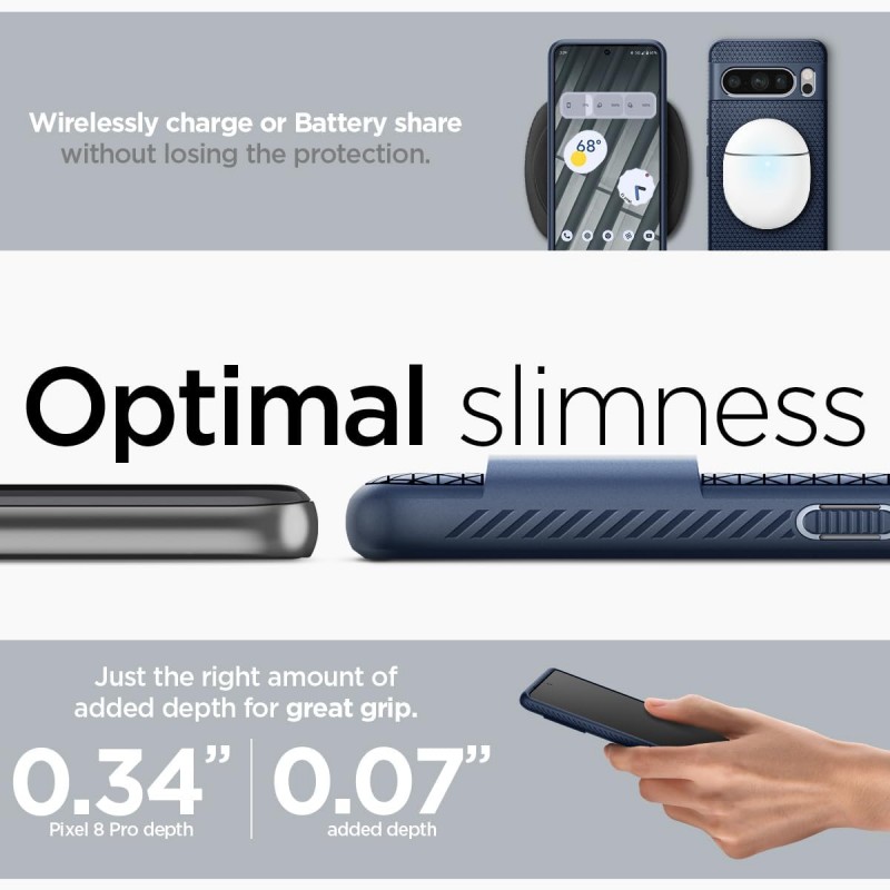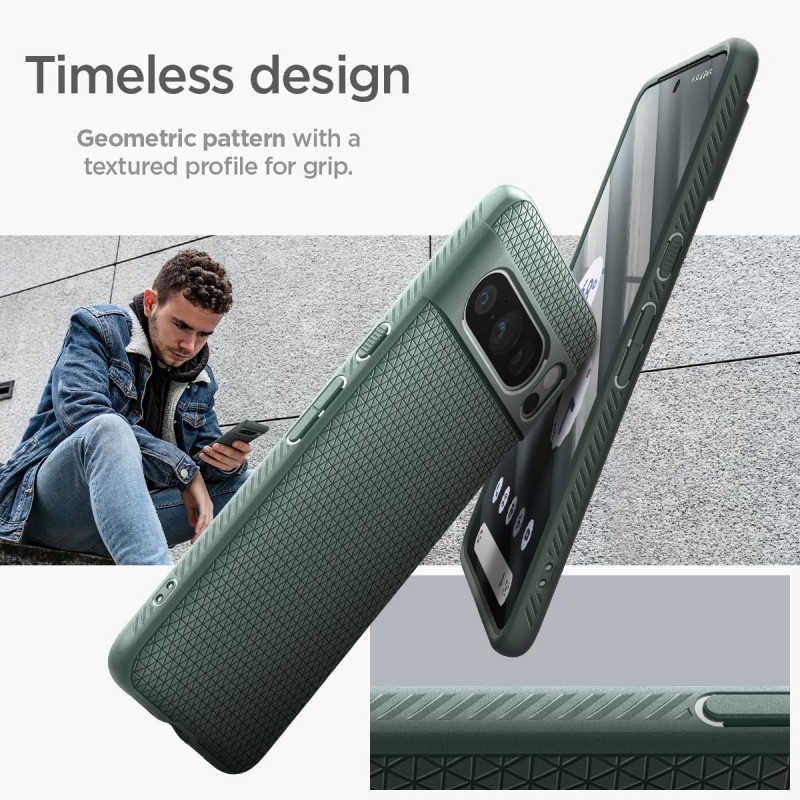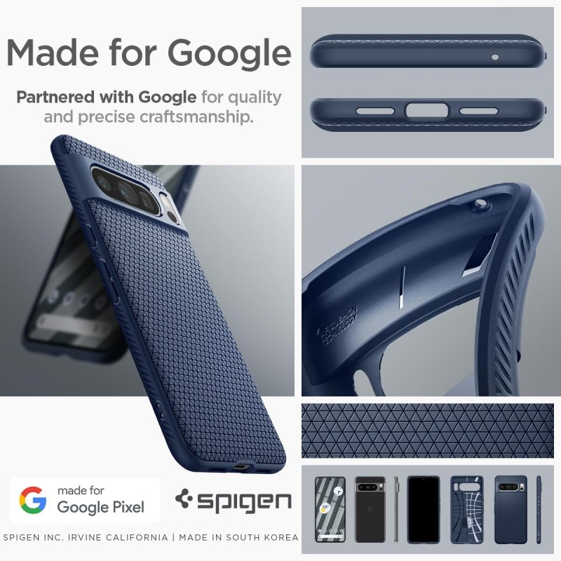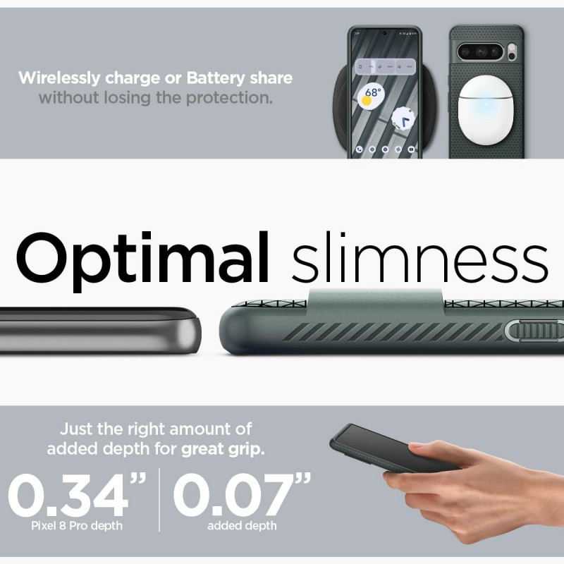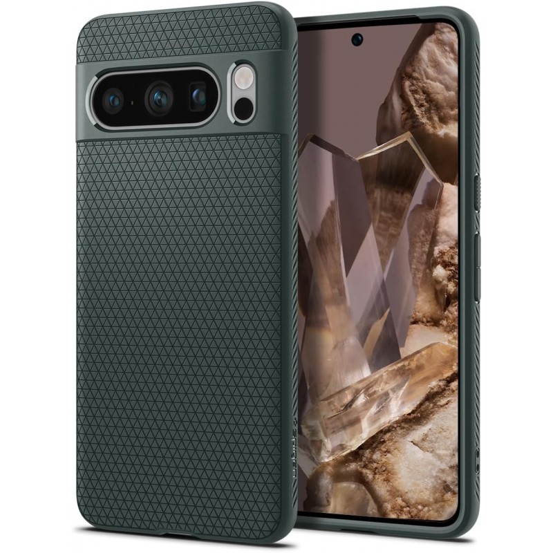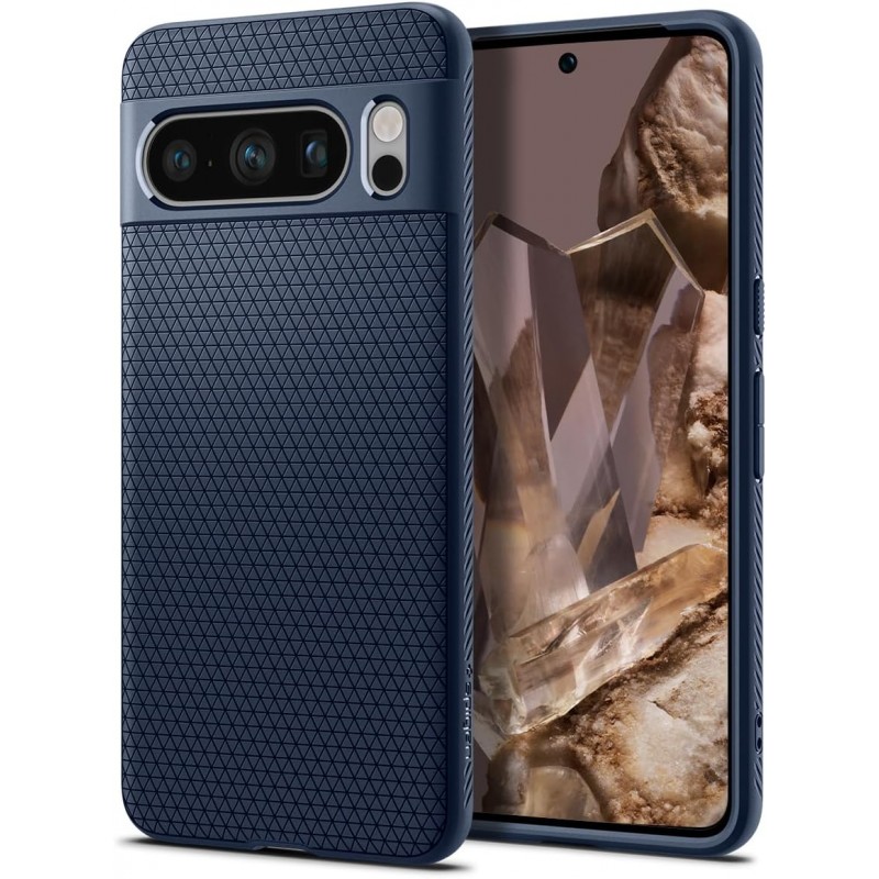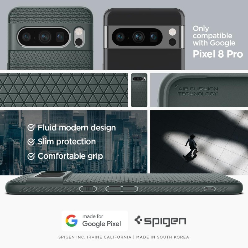 Capa Liquid Air para Google Pixel 8 Pro disponível em preto mate, azul-marinho e verde. Fabricada em poliuretano termoplástico (TPU), protege contra impactos e arranhões, com design leve e elegante.