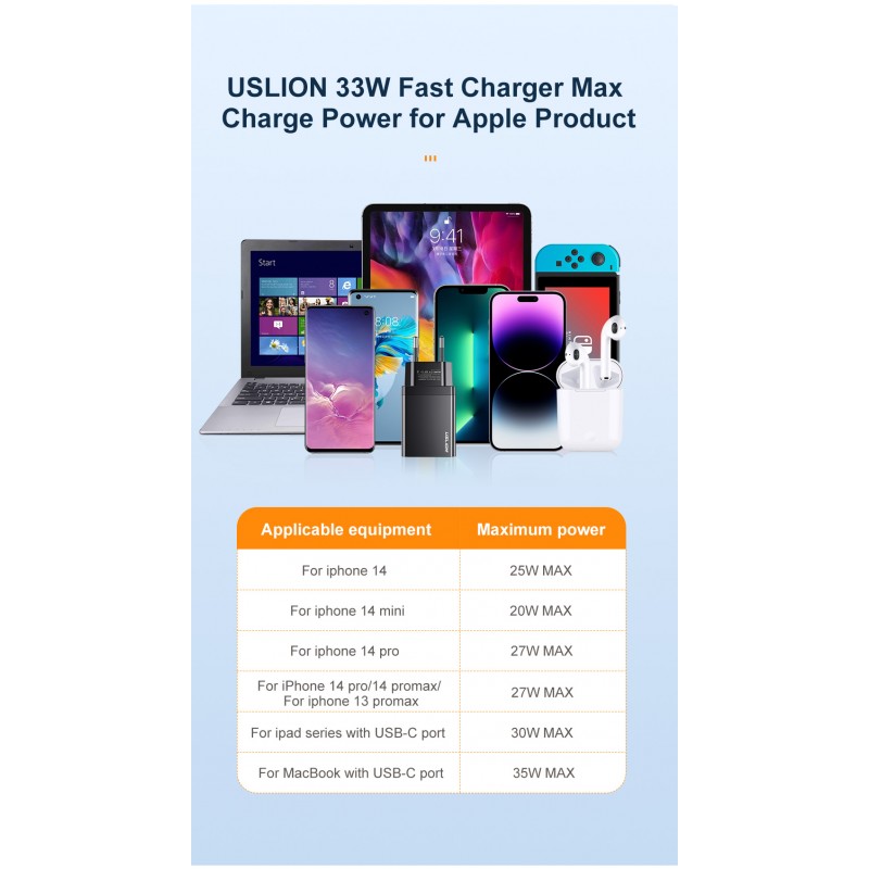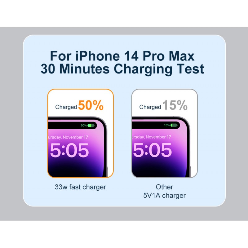 Maximize a eficiência do carregamento com o nosso Carregador Rápido de 33W, compatível com uma ampla gama de dispositivos incluindo os modelos mais recentes de smartphones e tablets.