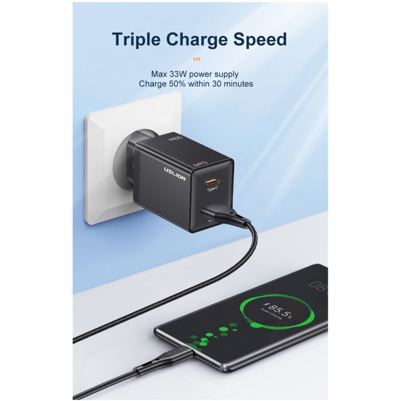 Explore o potencial completo dos seus dispositivos móveis com o Carregador Rápido USB de 33W.