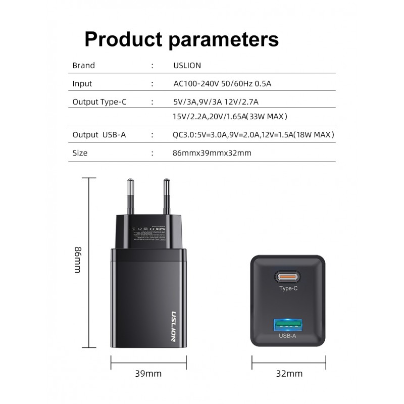 Conteúdo da Embalagem: 1 x Carregador Rápido de 33W