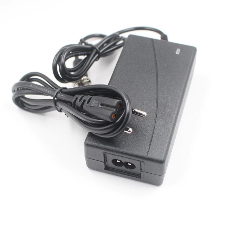 Tensão de saída: 42v (volts) e 2a (amperes) e 84w (watts) (usado para carregar baterias de lítio de 36v (volts))