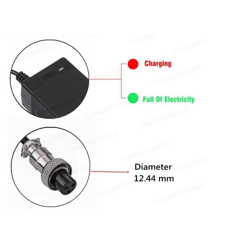 Tensão de saída: 42v (volts) e 2a (amperes) e 84w (watts) (usado para carregar baterias de lítio de 36v (volts))