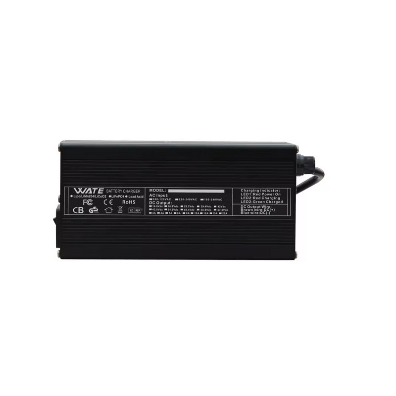 Carregador inteligente desenvolvido para baterias LiFePO4 de 24 células, compatível com sistemas de 72V e 76.8V. Ideal para aplicações como bicicletas elétricas, trotinetes e outros equipamentos com baterias de alta capacidade.