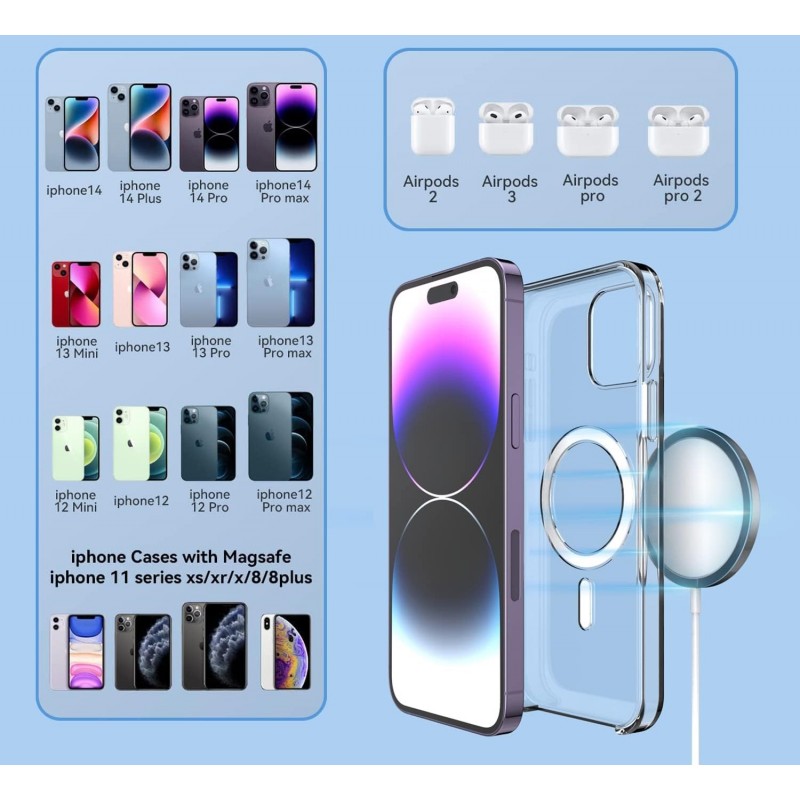 Este carregador oferece uma potência máxima de 15W para modelos iPhone 14/14 Plus/14 Pro/14 Pro Max/13 Pro/13 Pro Max/12 Pro/12 Pro Max e outros modelos de iPhone.