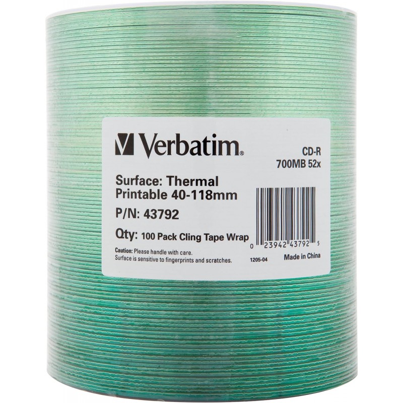 Verbatim CD-R 700MB com velocidade de gravação de 52X. Pacote com 100 CDs em branco, ideal para armazenamento de dados, música ou backups. Alta qualidade de gravação.