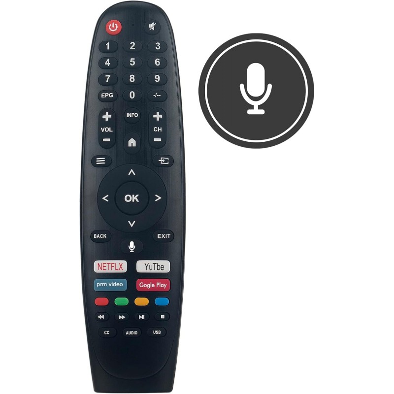 Controlo remoto de substituição com comando de voz compatível com Android TVs Caixun, Blaupunkt, Estar e Sansui. Pronto a usar, sem necessidade de programação.