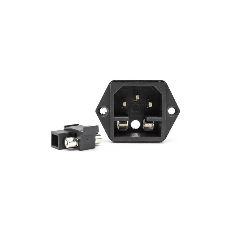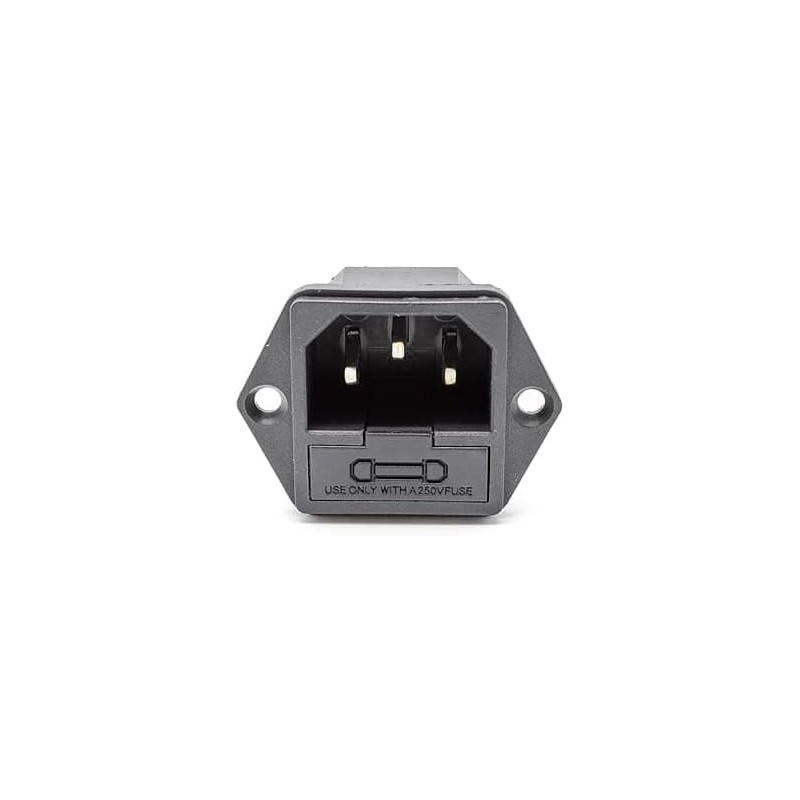 Conector IEC C14 Macho com Porta-Fusíveis - 10A 250V, Ideal para Montagem em Painel Chassis