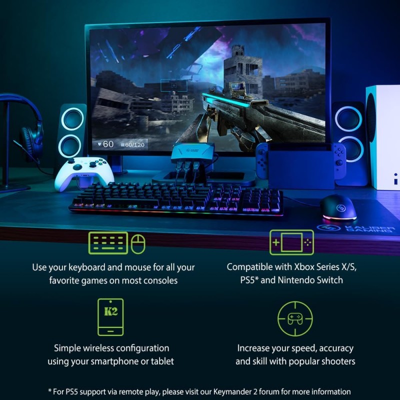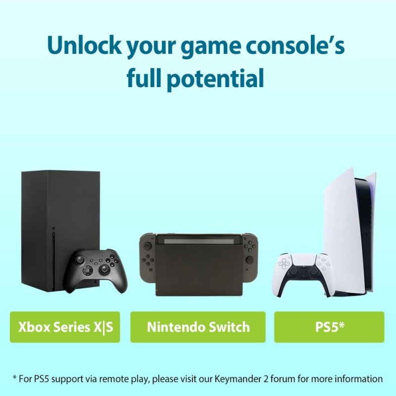 Compatibilidade abrangente: Use o KeyMander 2 com uma variedade de consolas, incluindo Xbox Series X/S, Xbox One, Xbox 360, PS5, PS4, PS3 e Nintendo Switch.