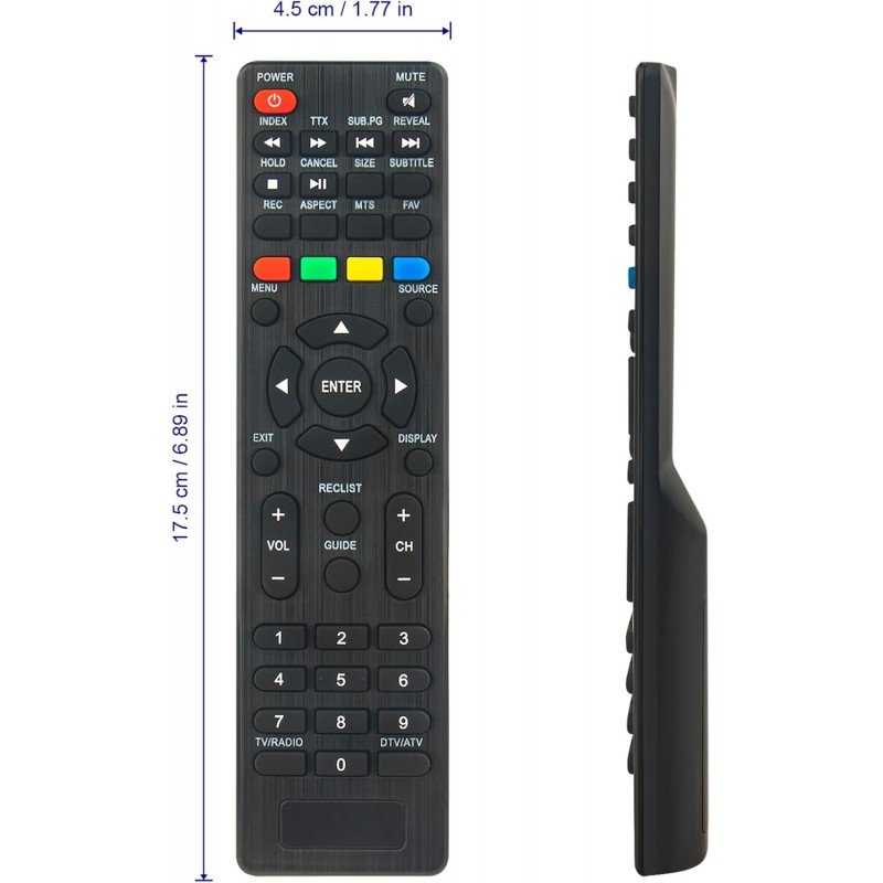 O design leve e ergonómico torna-o confortável de segurar e fácil de utilizar, com todos os botões essenciais para navegação, volume, menus e funções principais da televisão.