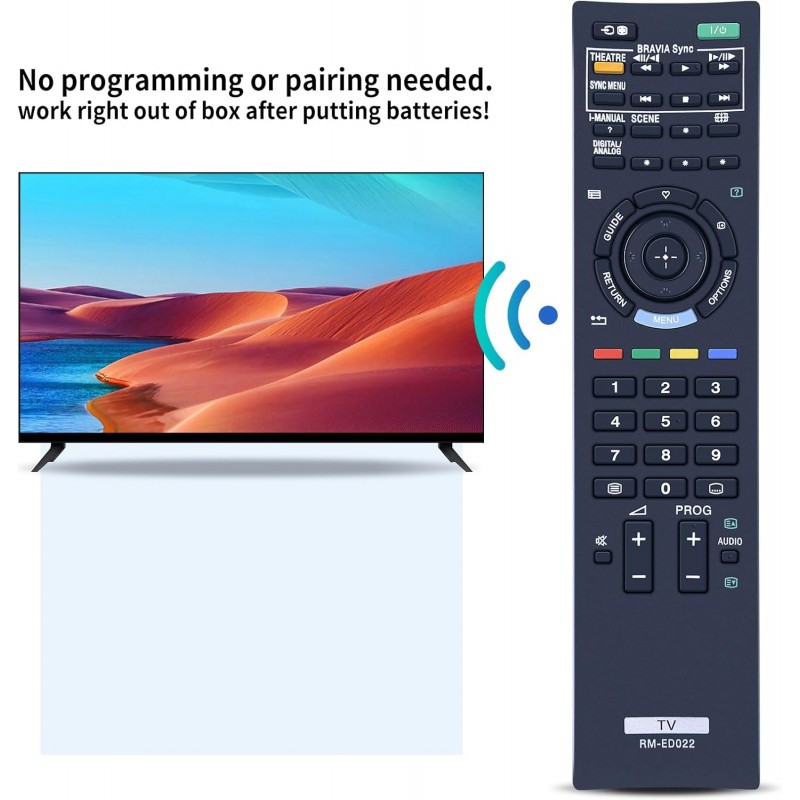 Comando de substituição RM-ED022 para televisões Sony Bravia. Compatível com vários modelos KDL. Pronto a usar e com botões universais.