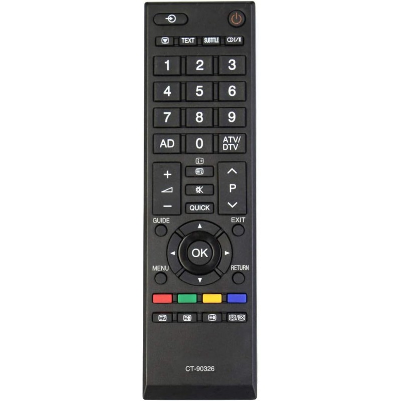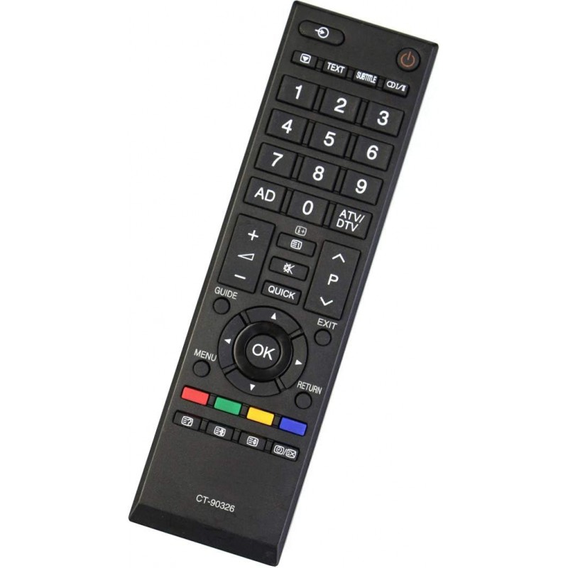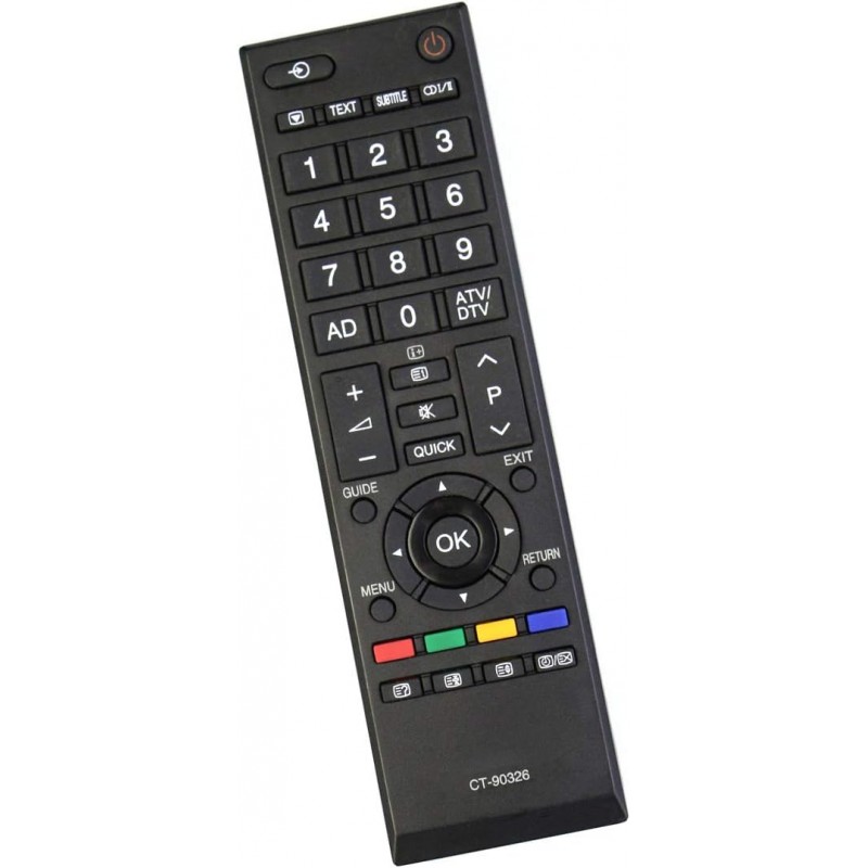 Comando remoto compatível com televisores Toshiba LED e LCD, modelo CT90326 e CT-90326. Este comando foi desenvolvido para substituir o original, oferecendo total funcionalidade sem necessidade de programação.