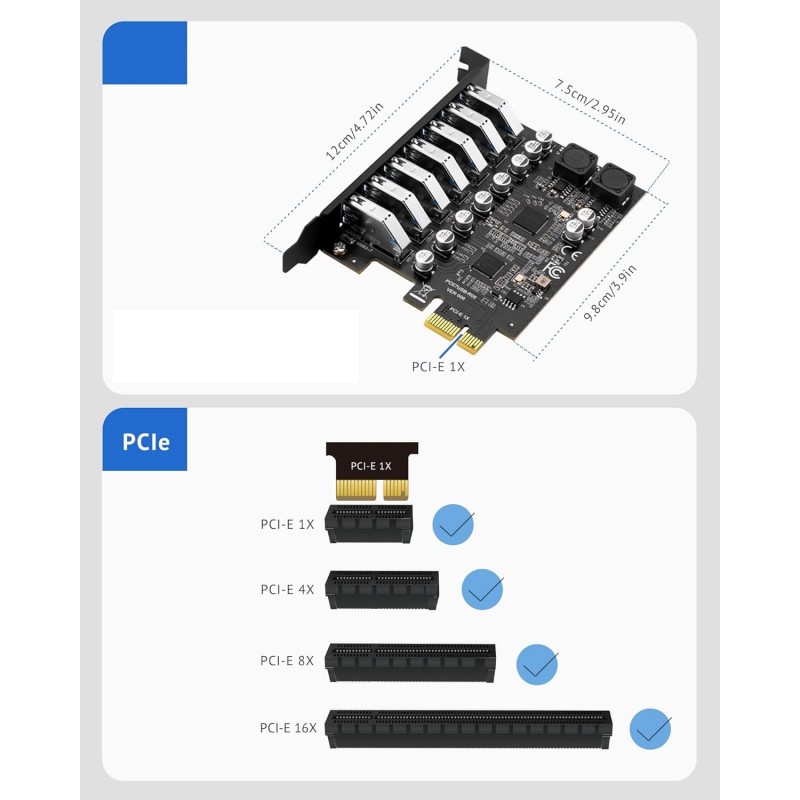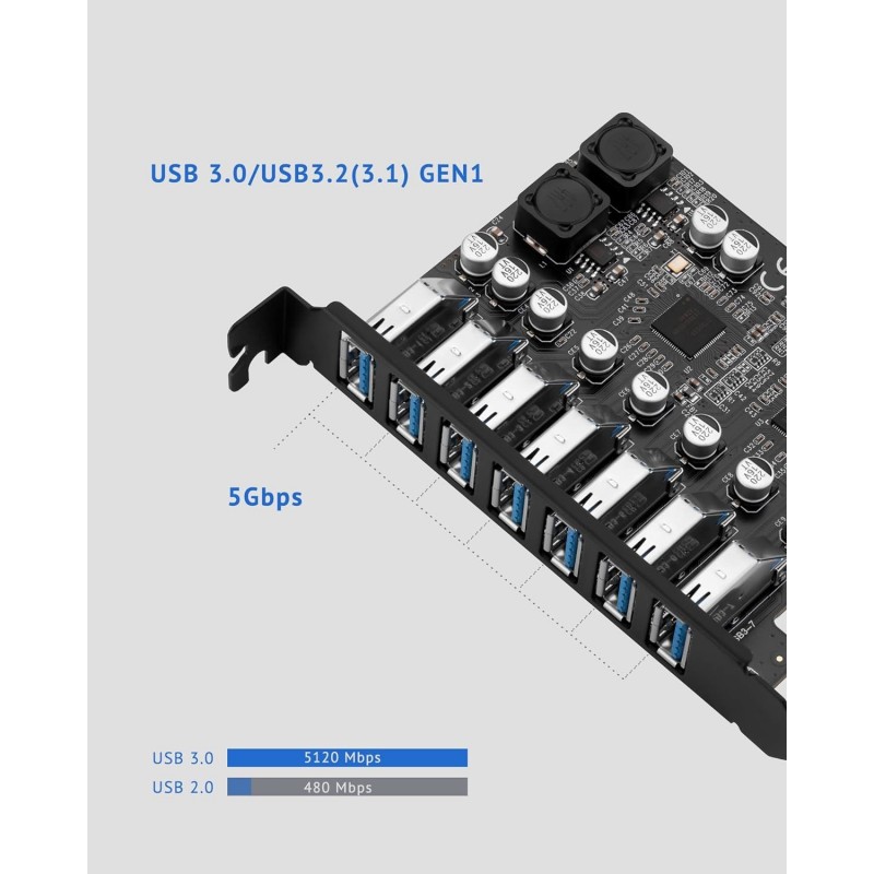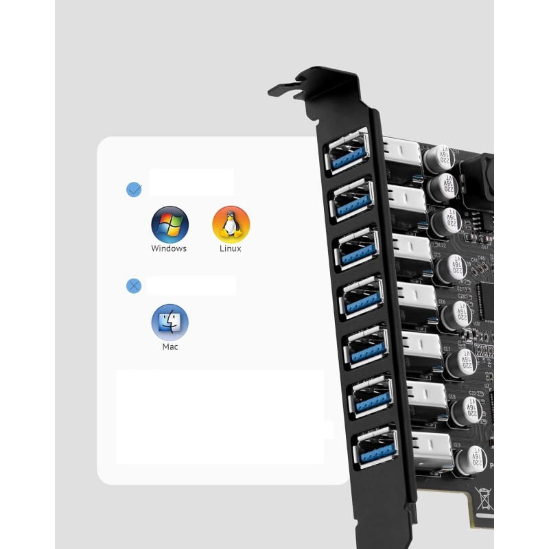Placa de Expansão PCIe USB 3.0 com 7 Portas - Alta Velocidade e Compatibilidade Ampla para PC de Mesa