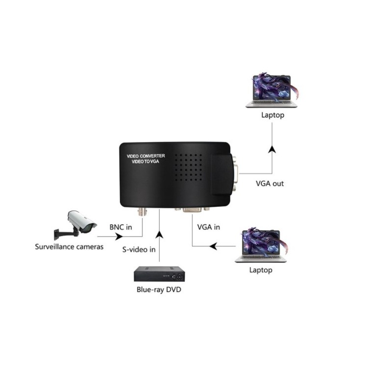 Este conversor funciona traduzindo o sinal de vídeo de entrada em um formato compatível com a entrada VGA, garantindo assim uma exibição clara e nítida do vídeo. Ele é ideal para aplicações de segurança, monitoramento de câmeras, apresentações em salas de reuniões, entre outros, onde é necessário exibir sinais de vídeo em uma tela ou monitor com entrada VGA.