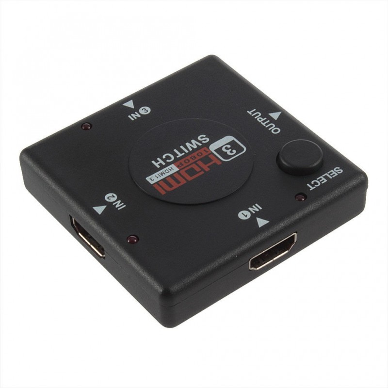 MINI-SWITCH HDMI - 3 Portas Hoje em dia a maioria dos aparelhos de alta tecnología levam portas HDMI... Com este switch vai solucionar o seu problema, porque teremos a possibilidade de conectar até 3 aparelhos usando um só cabo de saida.